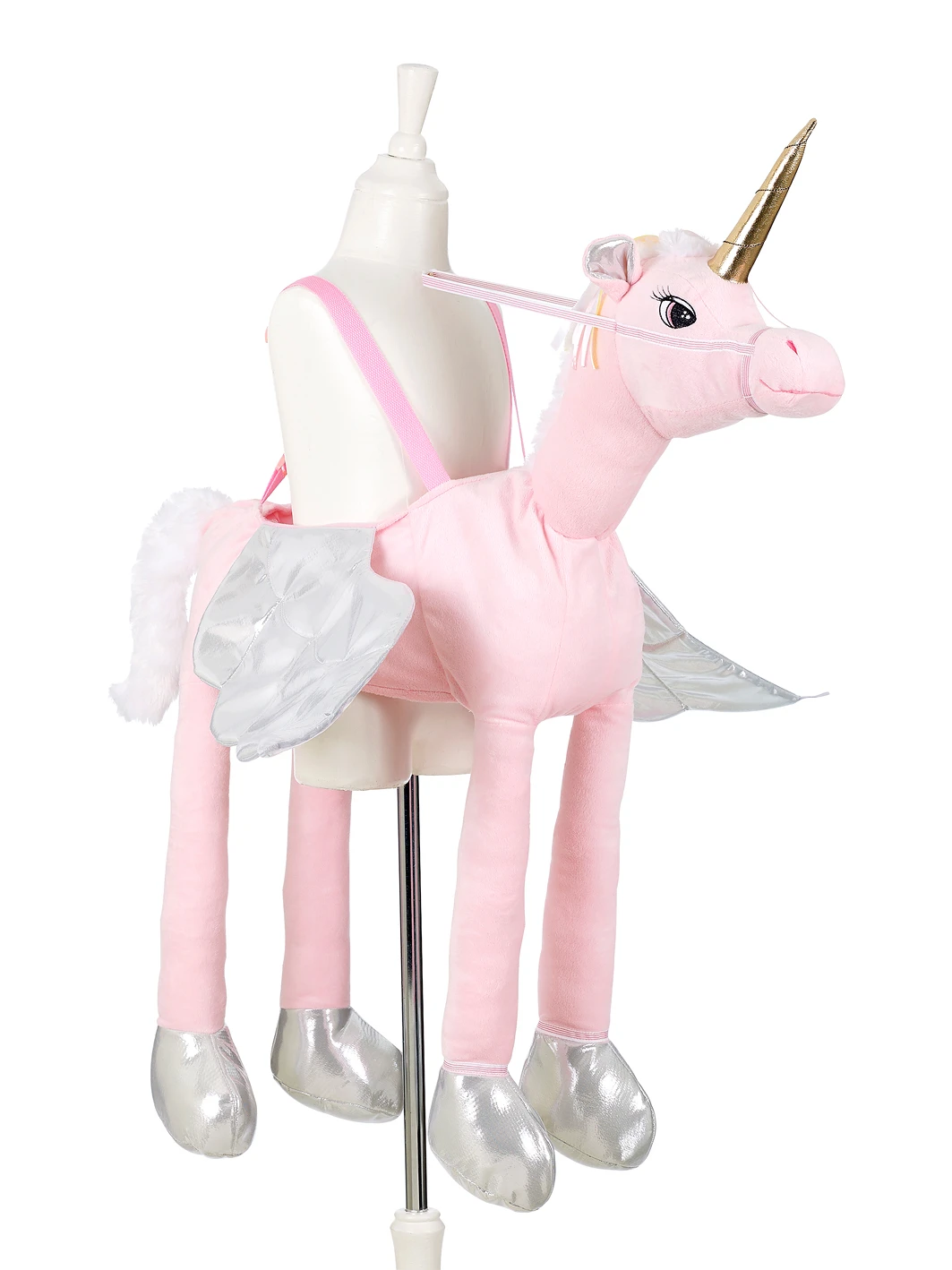 For the little fans, Souza! a fabulous ride-on. And it is a very special unicorn because it not only has a horn, but also wings. This pink unicorn has many very beautiful details such as the golden horn, the silver hooves, the silver wings, the large friendly eyes.
