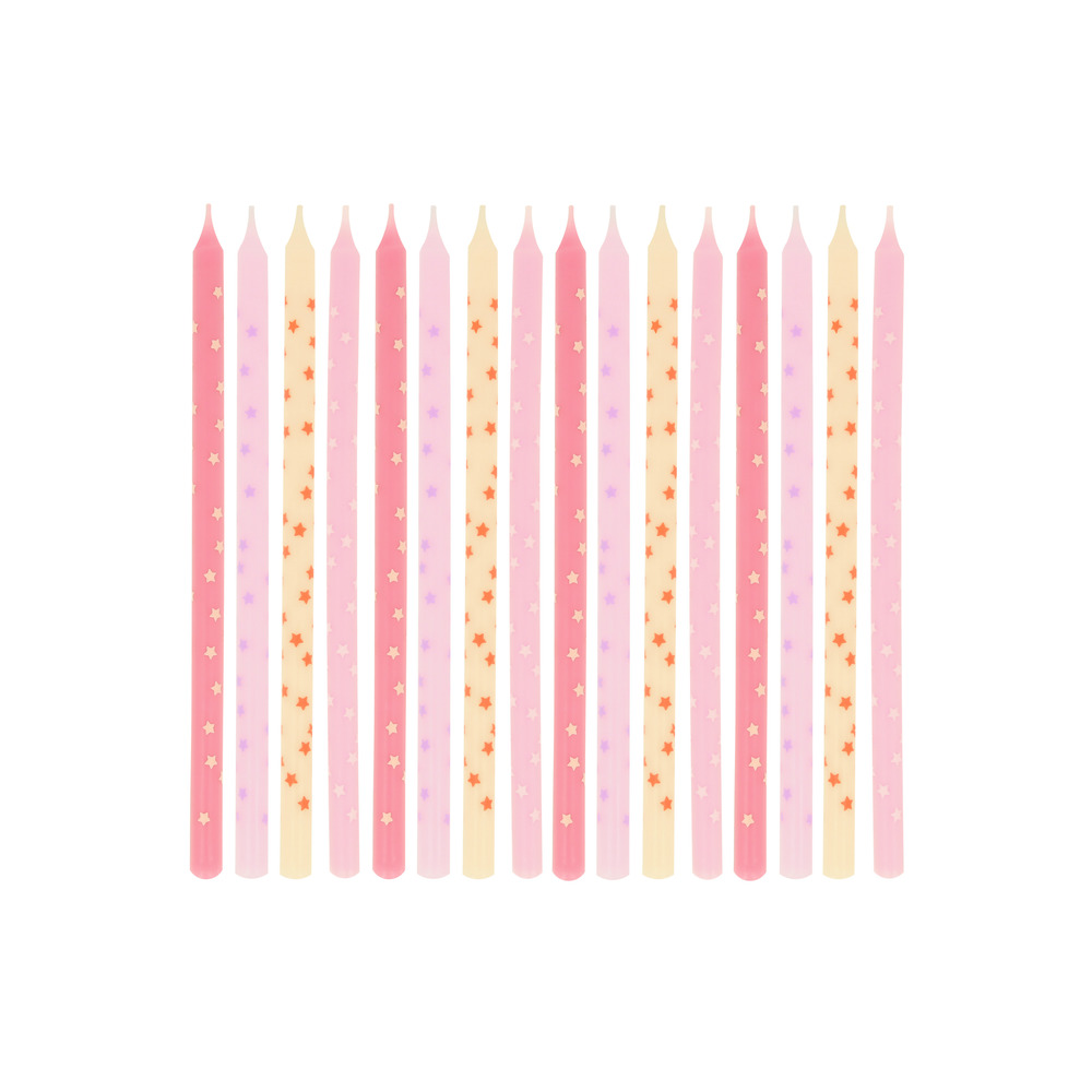 Want to add the wow factor to your cakes or big cupcakes? Pop on a fun candle. These pink beauties, in shades of pink wax with pink star transfers, will make all your guests feel like stars!